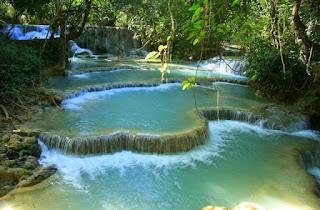 un truc de ouf" le tout premier jour de l'année. Cela met des bonnes bases pour l'année qui commence. Donc tous les 4, nous sommes allés nous baigner dans les eaux turquoises (et très froides surtout!) du parc de That Kuang Si, une cascade qui se déversent au fur et à mesure en bassins naturels. Le parc comprend aussi un centre de réhabilitation des ours sauvés du braconnage.